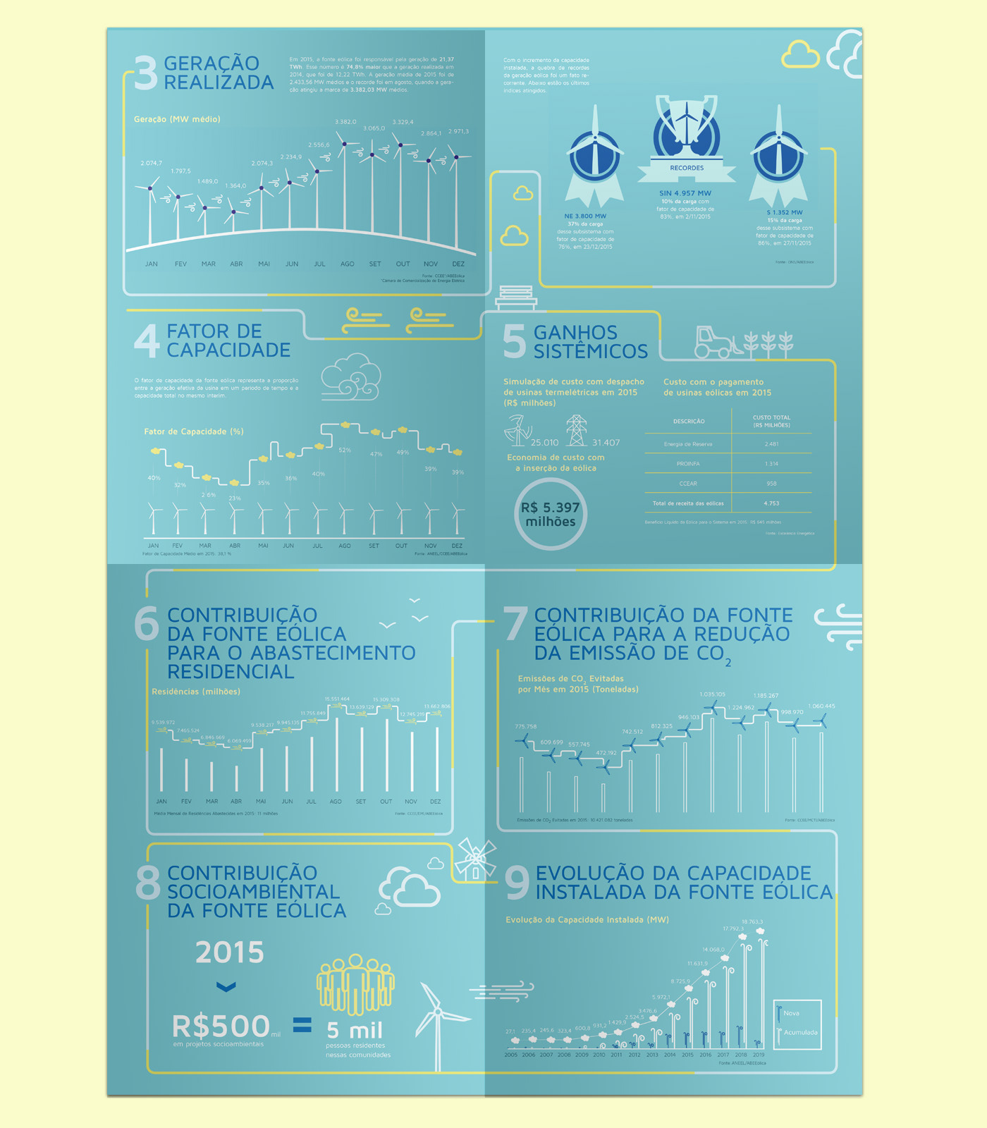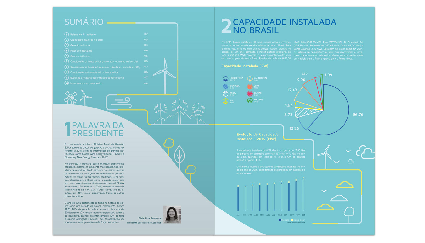 Proposta de boletim em formato de poster dobrável para a companhia apresentar seus dados mais importantes do ano.